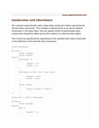 Inheritance together with encapsulation and polymorphism is one of the three primary characteristics of object-oriented programming. I could be wrong but I believe since you are inheriting from foo you have to call a base constructor. The inheritance mechanism allows the child class to access the parent members except its private members as if it is the members owner.